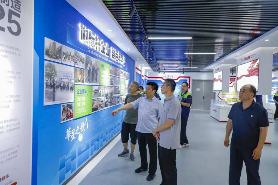 黨建文化展廳,崔士啟介紹了華星重工自成立以來的各個發(fā)展階段、公司的重大事件以及來自各級領(lǐng)導的關(guān)懷和支持。從初創(chuàng)時期的艱難起步到如今成為行業(yè)內(nèi)的佼佼者,每一步都凝聚著全體員工的心血與汗水。他通過一系列珍貴的歷史照片和實物展示,生動再現(xiàn)了華星重工的成長軌跡。