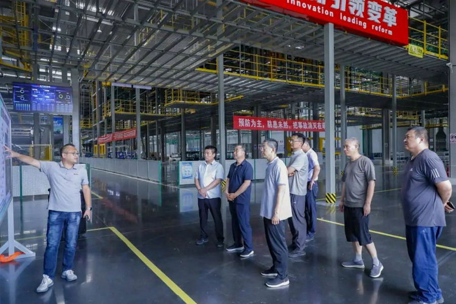 隨后,來訪人員前往華星重工,換乘觀光車進入廠區(qū),沿著參觀路線,深入生產(chǎn)車間,聽取了公司黨委委員、生產(chǎn)副總高攀關(guān)于生產(chǎn)流程、工藝技術(shù)及質(zhì)量管理等方面的詳細介紹。