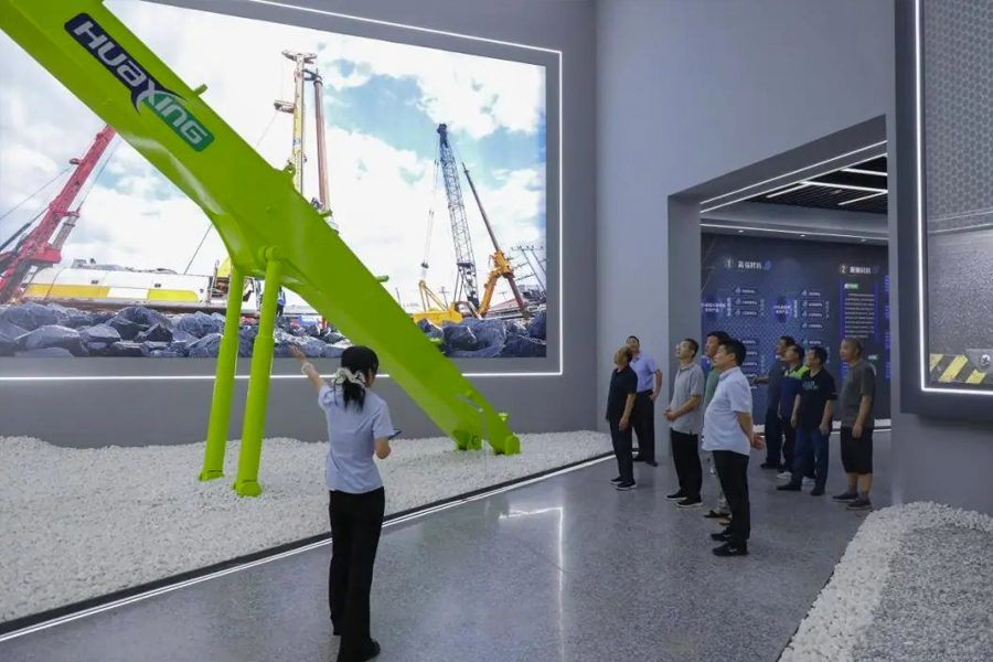 從車間出來,一行人來到華星重工企業(yè)展廳,講解員全面介紹了華星重工的發(fā)展歷程、企業(yè)文化建設成果以及在高端裝備制造領(lǐng)域的創(chuàng)新實踐,以及產(chǎn)品種類和產(chǎn)品應用場景等。